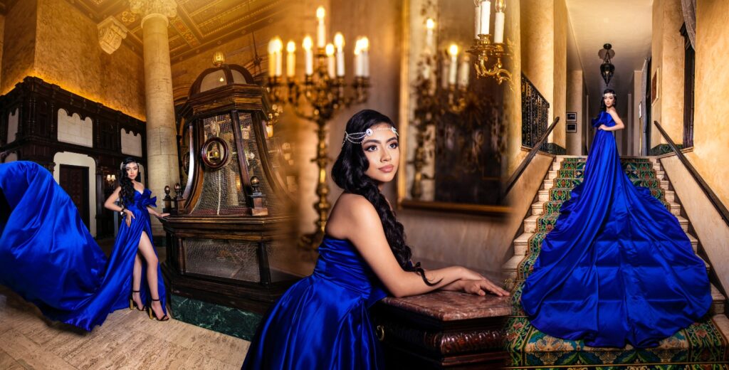 It’s a versatile, majestic location that brings a fairytale touch to every photo—equally suited for palace quince photography or a full quinceanera castle shoot.