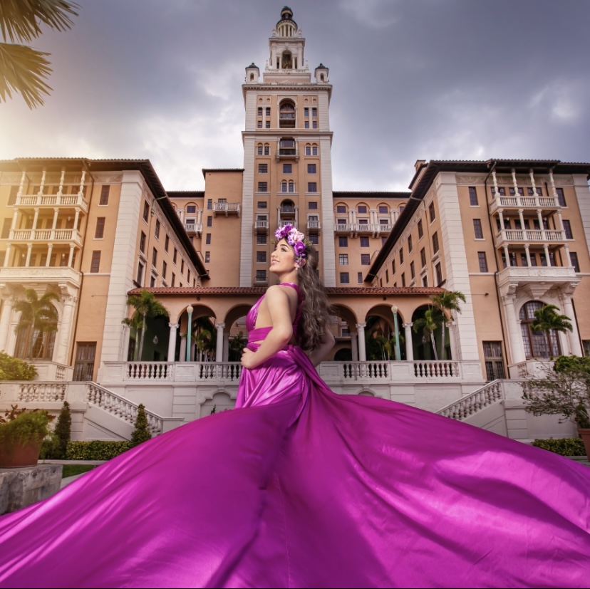 The Biltmore Hotel is one of Miami’s most elegant venues— a place that feels like a modern-day castle, ideal for castle quince photography. Its marble floors, grand chandeliers, and classic columns create the perfect royal backdrop for any session.