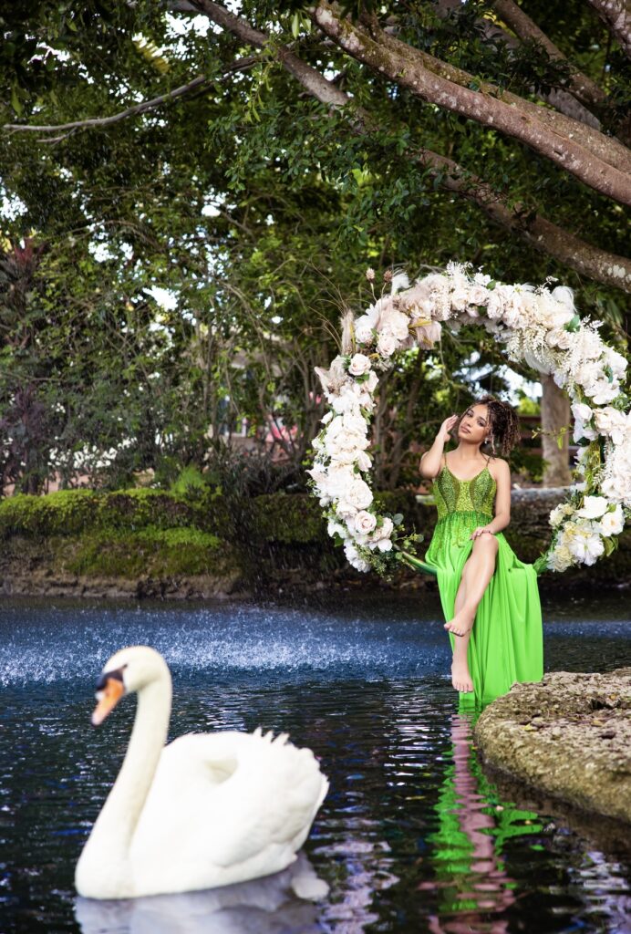 Fotos de quince con animales: cisnes que encarnan elegancia